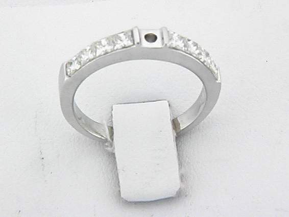 18K WHITE GOLD RING WITH .60CT PRINCESS CUT DIAMOND SET IN INVISIBLE SETTING.