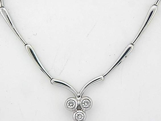 14K WHITE GOLD NECKLACE WITH .25CT ROUND SHAPE DIAMOND SET IN BEZEL SETTING.