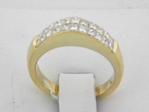 18K YELLOW GOLD BAND WITH 1.25CT PRINCESS CUT DIAMOND SET IN INVISIBLE SETTING.