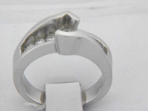 14K WHITE GOLD RING WITH .45CT ROUND SHAPE DIAMOND SET IN CHANNEL SETTING.