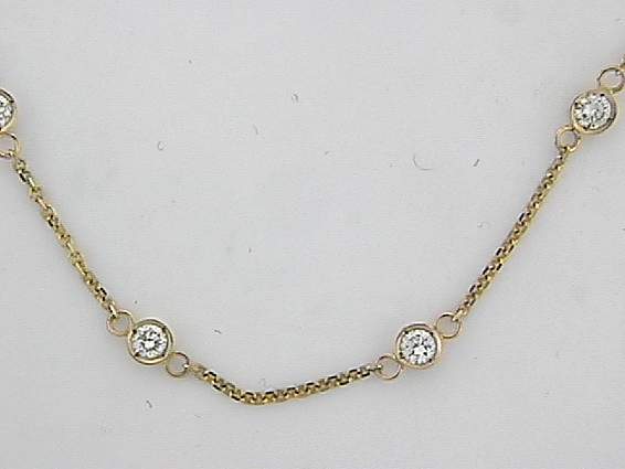 14K YELLOW GOLD NECKLACE WITH 1.75CT ROUND SHAPE DIAMOND SET IN BEZEL SETTING.