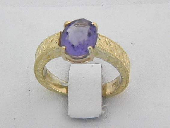 14K YELLOW GOLD RING WITH 2.11CT OVAL SHAPE AMETHYST SET IN FOUR PRONGS SETTING.