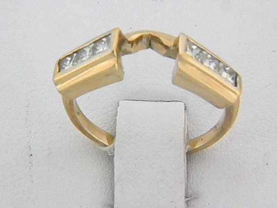 14K YELLOW GOLD RING GUARD WITH .55CT PRINCESS CUT DIAMOND SET IN CHANNEL SETTING.