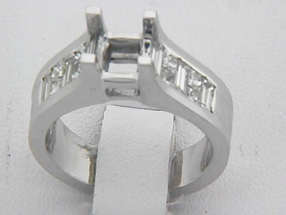 18K WHITE GOLD RING WITH .50CT PRINCESS CUT DIAMOND, .70CT BAGUETTE DIAMOND, SET IN INVISIBLE SETTING.