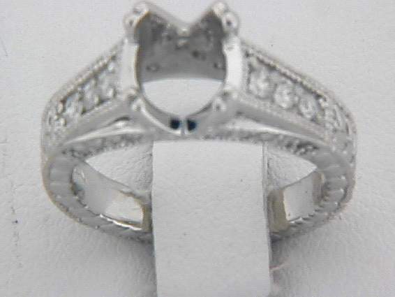 14K WHITE GOLD RING WITH .60CT ROUND SHAPE DIAMOND SET IN PAVE’ AND PRONGS SETTING.