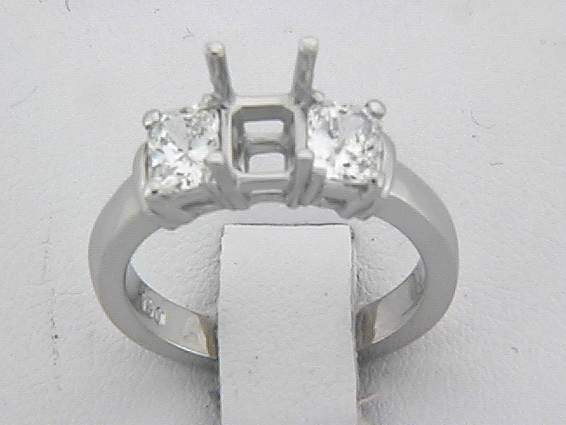 PLATINUM RING WITH 2PC, RADIANT CUT DIAMOND 1.10CT SET IN PRONGS SETTING.