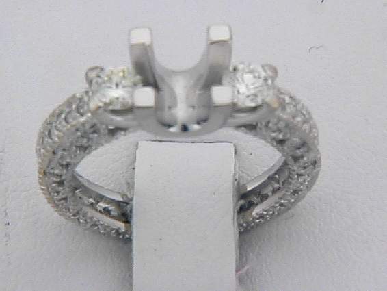 14K WHITE GOLD RING WITH .45CT ROUND SHAPE DIAMOND SET IN PAVE’ SETTING. AND 2PC OF .45CT ROUND SHAPE DIAMOND SET IN FOUR PRONGS SETTING.