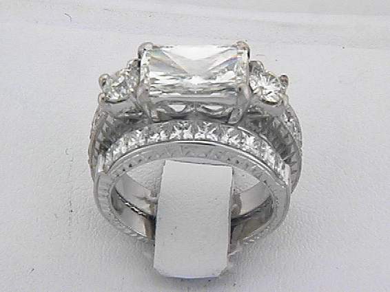 18K WHITE GOLD RING WITH 1.10CT ROUND SHAPE DIAMOND, CENTER OF 2.86CT SI1,H-I RADIANT CUT DIAMOND SET IN PRONGS SETTING. 18K WHITE GOLD BAND WITH 1.10CT PRINCESS CUT DIAMOND SET IN INVISIBLE SETTING.