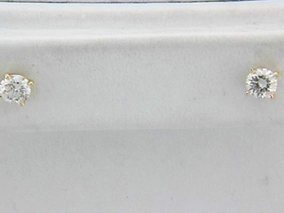 14K YELLOW GOLD EARRING WITH .65CT ROUND SHAPE DIAMOND SET IN FOUR PRONGS SETTING.