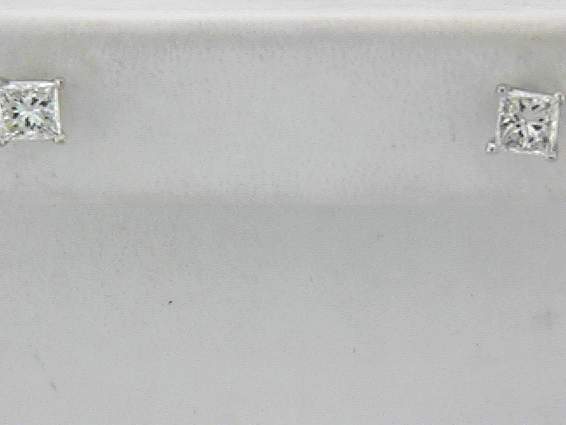 14K WHITE GOLD EARRING WITH .80CT PRINCESS CUT DIAMOND SET IN FOUR PRONGS SETTING.
