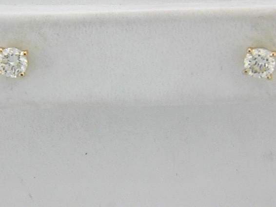 14K YELLOW GOLD EARRING WITH .65CT ROUND SHAPE DIAMOND SET IN FOUR PRONGS SETTING.