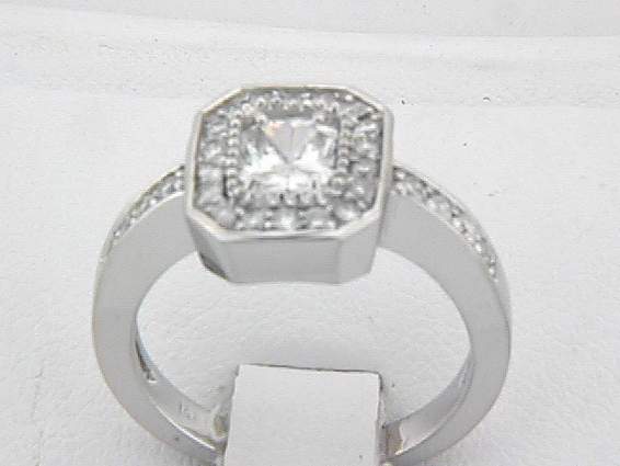 14K WHITE GOLD RING WITH .45CT ROUND SHAPE DIAMOND, AND CENTER OF .57CT RADIANT CUT DIAMOND SET IN PRONGS AND PAVE’ SETTING.