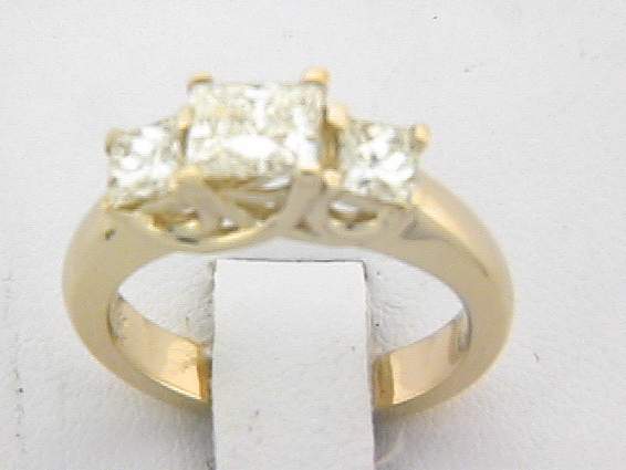 14K YELLOW GOLD RING WITH .81CT PRINCESS CUT DIAMOND, AND CENTER OF 1.62CT PRINCESS CUT, TOTAL OF 2.43CT DIAMOND SET IN FOUR PRONGS SETTING.