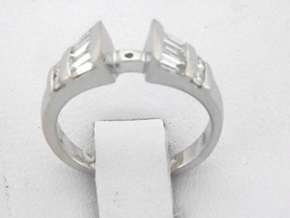 14K WHITE GOLD RING WITH .40CT BAGUETTE, AND .15CT ROUND DIAMOND SET IN CHANNEL SETTING.