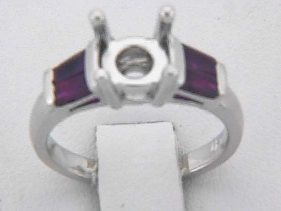 14K WHITE GOLD RING WITH 1.20CT BAGUETTE RUBY SET IN CHANNEL SETTING.