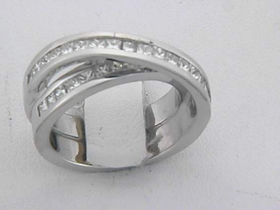 14K WHITE GOLD RING WITH 1.50CT PRINCESS CUT DIAMOND SET IN CHANNEL SETTING.