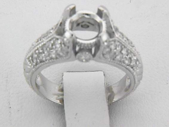 14K WHITE GOLD RING WITH .80CT ROUND SHAPE DIAMOND SET IN BEZEL AND PAVE’ SETTING.