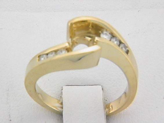 14K YELLOW GOLD RING WITH .20CT ROUND SHAPE DIAMOND SET IN CHANNEL SETTING.