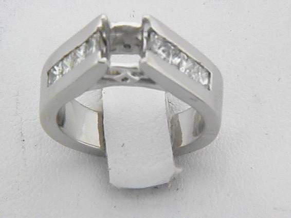 14K WHITE GOLD RING WITH 1.10CT PRINCESS CUT DIAMOND SET IN CHANNEL SETTING.