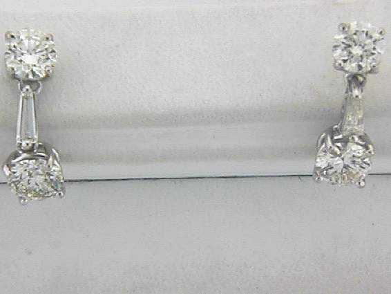 14K WHITE GOLD EARRING WITH 3CT ROUND SHAPE AND BAGUETTE DIAMOND SET IN PRONGS SETTING.