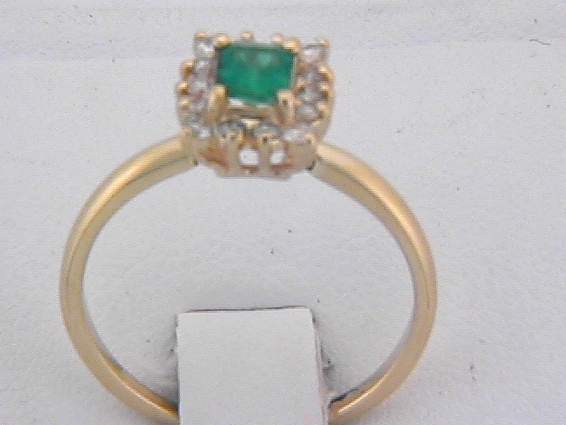 14K YELLOW GOLD RING WITH .40CT ROUND SHAPE DIAMOND SET IN PRONGS SETTING , CENTER OF .40CT EMERALD CUT EMERALD.