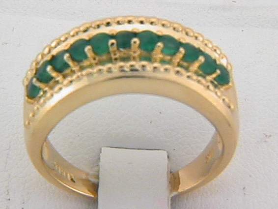 14K YELLOW GOLD RING 1CT ROUND SHAPE EMERALD SET IN PRONGS SETTING.