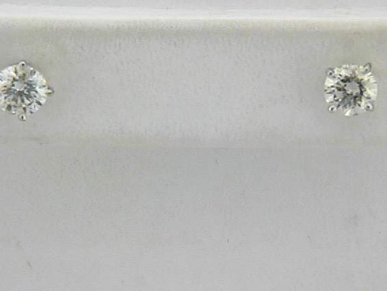 14K WHITE GOLD EARRING WITH 1CT ROUND DIAMOND SET IN FOUR PRONGS SETTING.