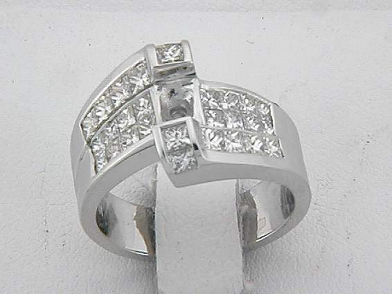 18K WHITE GOLD RING WITH 2CT PRINCESS CUT DIAMOND SET IN INVISIBLE AND CHANNEL SETTING.