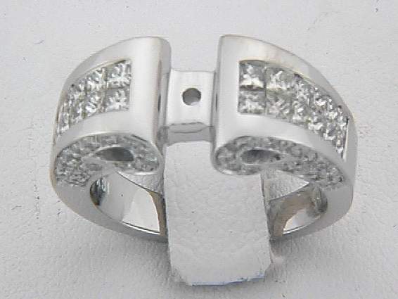 18K WHITE GOLD RING WITH 1.20CT PRINCESS CUT DIAMOND SET IN INVISIBLE SETTING, .65CT ROUND SHAPE DIAMOND SET IN PAVE’ SETTING.