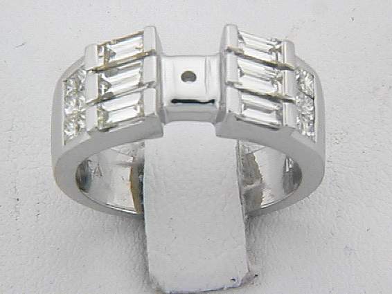 18K WHITE GOLD RING WITH 1CT BAGUETTE DIAMOND SET IN CHANNEL SETTING, AND .50CT PRINCESS CUT DIAMOND SET IN INVISIBLE SETTING.