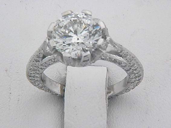 18K WHITE GOLD RING WITH 1.05CT ROUND SHAPE DIAMOND SET IN PAVE’ SETTING, CENTER OF 3.01CT SI3,F ROUND SHAPE DIAMOND , MEAS:9.03-8.93X5.75MM SET IN PRONGES SETTING.