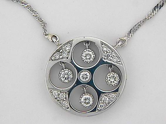 14K WHITE GOLD NECKLACE WITH .70CT ROUND SHAPE DIAMOND SET IN BEZEL AND PAVE SETTING.