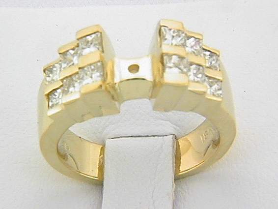 18K YELLOW GOLD RING WITH 1.40CT PRINCESS CUT DIAMOND SET IN CHANNEL SETTING.