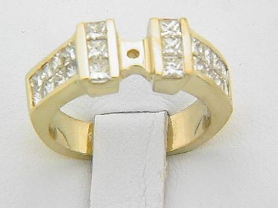 18K YELLOW GOLD RING WITH 1.30CT PRINCESS CUT DIAMOND SET IN CHANNEL AND INVISIBLE SETTING.