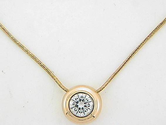 14K YELLOW GOLD NECKLACE WITH .55CT ROUND SHAPE DIAMOND SET IN BEZEL SETTING.