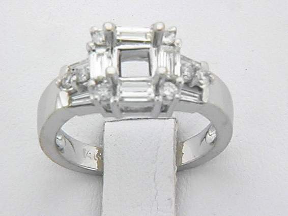 14K WHITE GOLD RING WITH .85CT BAGUETTE DIAMOND, .30CT ROUND SHAPE DIAMOND SET IN PRONGS SETTING.