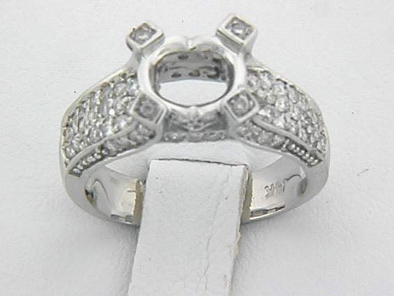 14K WHITE GOLD RING WITH .85CT ROUND SHAPE DIAMOND SET IN PAVE’ SETTING.