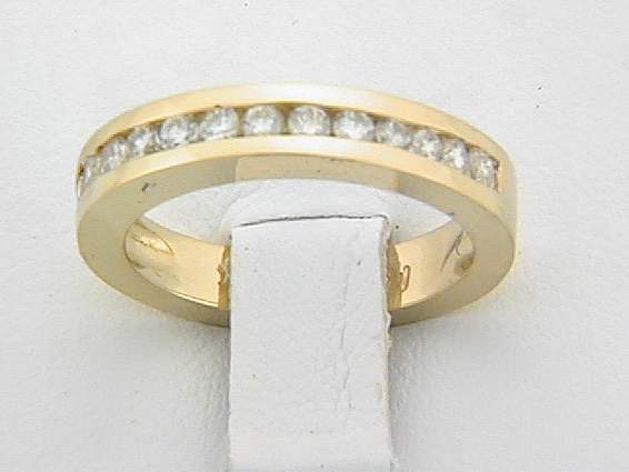 14K YELLOW GOLD RING WITH .60CT ROUND SHAPE DIAMOND SET IN CHANNEL SETTING.
