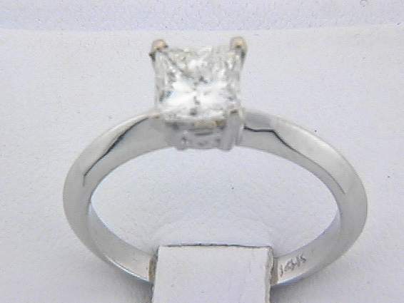 14K WHITE GOLD RING WITH 1.03CT PRINCESS CUT DIAMOND SET IN PRONGS SETTING.