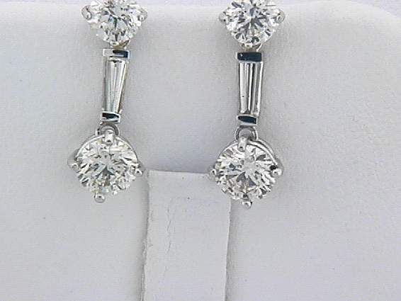 14K WHITE GOLD HAND MADE EARRING WITH 2PC, 1.CT S1,H ROUND SHAPE DIAMOND. AND .23CT VS2 H BAGUETTE DIAMOND, 2PC, 1.50CT SI,I ROUND SHAPE DIAMOND TOTAL OF 2.73CT DIAMOND SET IN PRONGS SETTING.