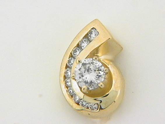 14K YELLOW GOLD PENDANT WITH .55CT ROUND SHAPE DIAMOND SET IN CHANNEL AND PRONGS SETTING.