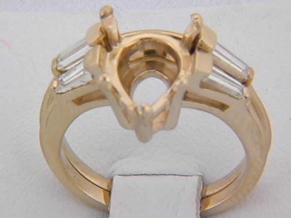 14K YELLOW GOLD ENGAGEMENT SET WITH .60CT BAGUETTE DIAMOND SET IN CHANNEL SETTING.