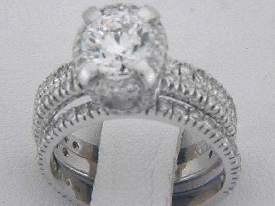 14K WHITE GOLD ENGAGEMENT SET WITH TOTAL OF 1.35CT ROUND SHAPE DIAMOND SET IN PAVE’ SETTING. CENTER OF 1.50CT VS2,E ROUND SHAPE DIAMOND SET IN FOUR PRONGS SETTING.