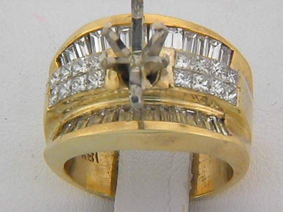 18K YELLOW GOLD RING WITH 1.10CT PRINCESS CUT DIAMOND , AND 2CT BAGUETTE DIAMOND SET IN INVISIBLE AND CHANNEL SETTING.