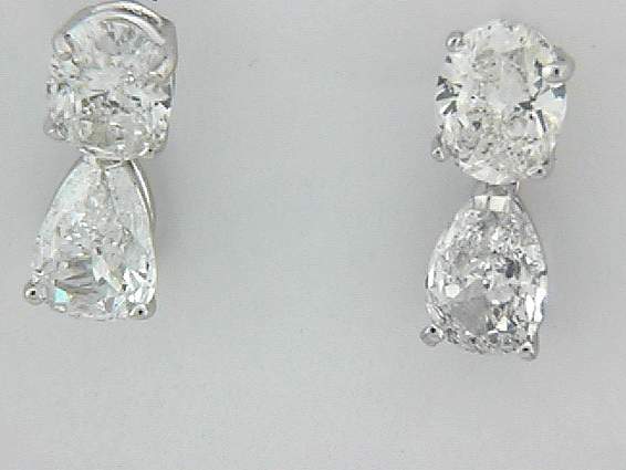 14K WHITE GOLD EARRING WITH (4PC) OVAL SHAPE AND PEAR SHAPE DIAMOND TOTAL OF 4.68CT SET IN PRONGS SETTING.