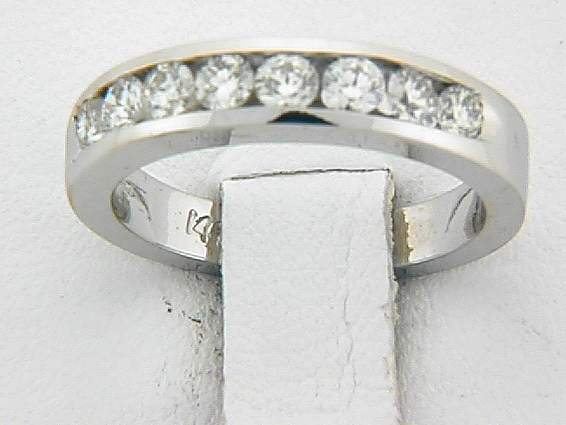 14K WHITE GOLD BAND WITH .75CT ROUND SHAPE DIAMOND SET IN CHANNEL SETTING.