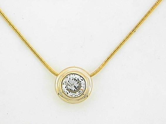 14K YELLOW GOLD NECKLACE WITH 1.05CT ROUND SHAPE DIAMOND SET IN BEZEL SETTING.