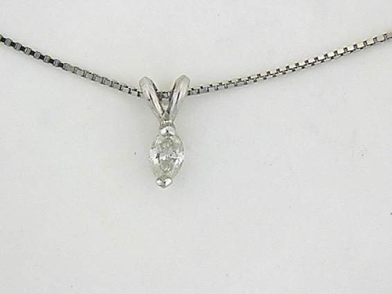 14K WHITE GOLD PENDANT WITH .35CT MARQUISE DIAMOND SET IN PRONGS SETTING.