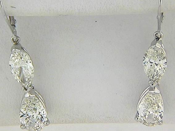 14K WHITE GOLD EARRING WITH 2.05CT MARQUISE DIAMOND, AND 2.25CT PEAR SHAPE DIAMOND SET IN PRONGS SETTING.