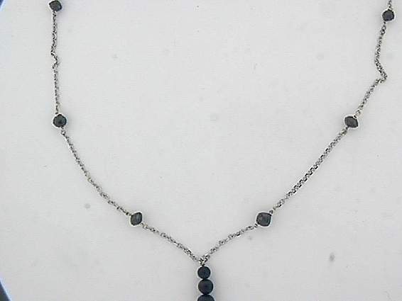 14K WHITE GOLD HAND MADE NECKLACE WITH (11PC) CRYSTAL CUT BLACK DIAMOND TOTAL OF 9.50CT .